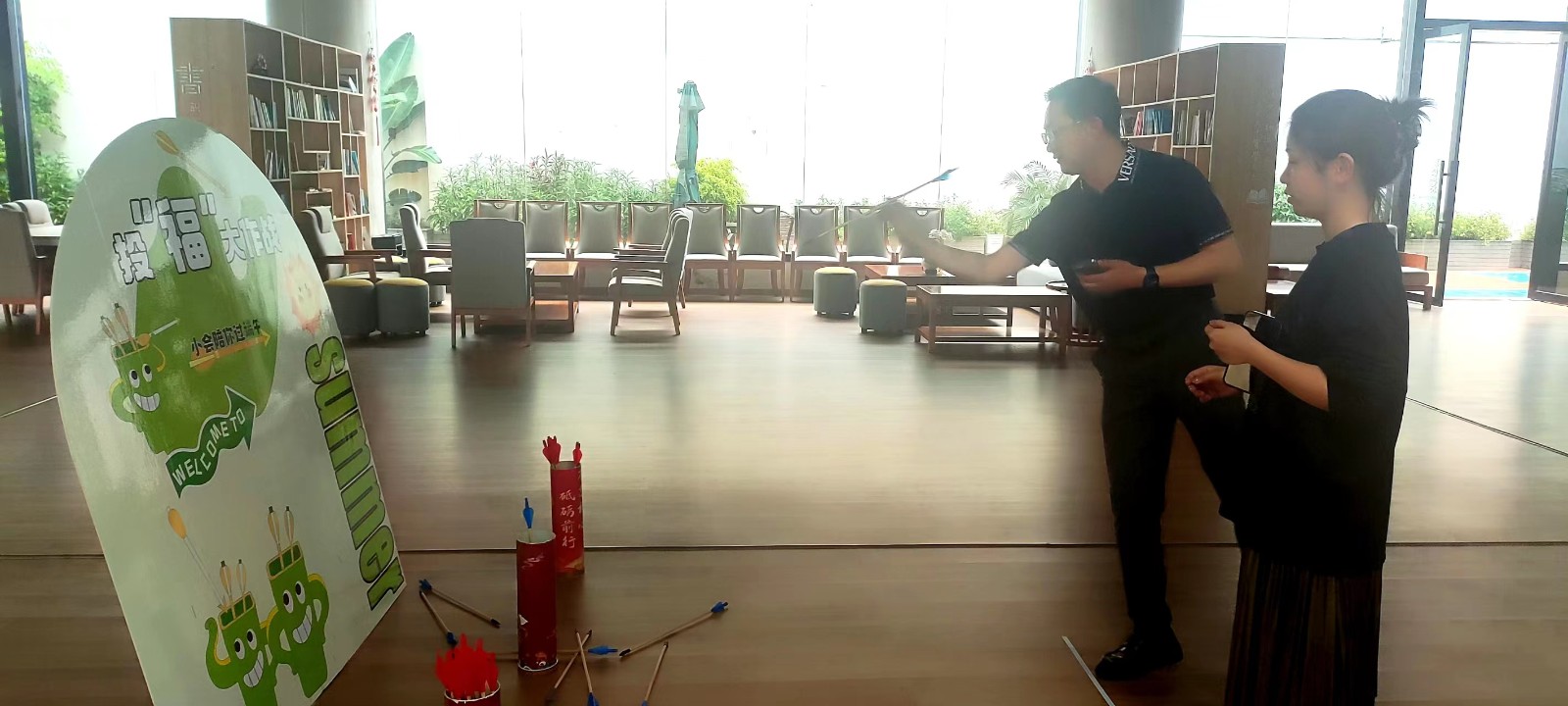 活動(dòng)現(xiàn)場(chǎng),立足于傳統(tǒng)節(jié)日民俗體驗(yàn),設(shè)置了投“?!贝笞鲬?zhàn)、粽子快“上鉤”、童年紙飛機(jī)等豐富多彩的活動(dòng)游戲攤位,融合中華傳統(tǒng)節(jié)日文化知識(shí),并通過游戲化、體驗(yàn)式的闖關(guān)游戲,讓職工們感受中華傳統(tǒng)節(jié)日的魅力。在包粽子環(huán)節(jié),大家圍在一起捋粽葉、填糯米、封口、捆扎,互幫互助,巧手翻飛,不一會(huì)兒,一個(gè)個(gè)翠綠欲滴、有棱有角的粽子就成型了。