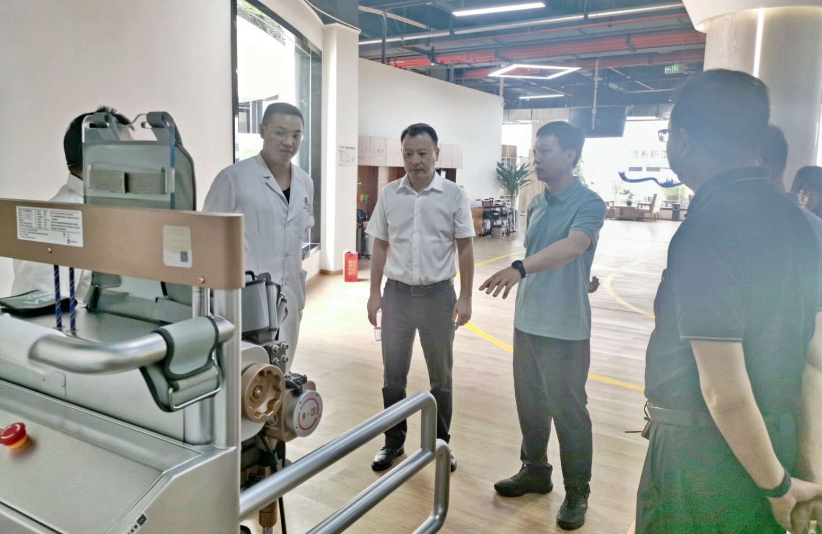 王坤一行實地前往集團旗下天植中藥公司、西南醫投護理院、康復理療中心、運動健康中心,對各板塊推進康養結合,融入銀發經濟發展相關舉措進行了深入了解。楊虹就西南醫投集團圍繞銀發經濟建設,在醫康養方面的產業發展情況做了詳細匯報。