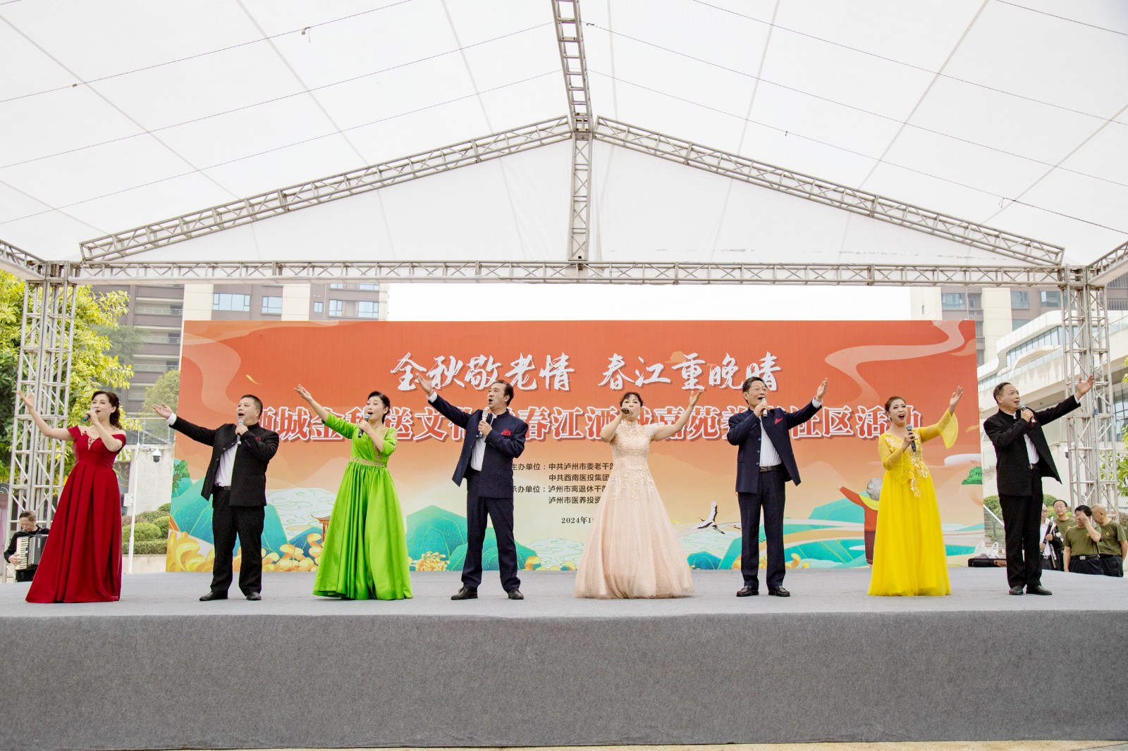 金秋送爽,丹桂飄香。為弘揚中華民族尊老愛老的傳統美德,豐富老年朋友的文化生活,增強老同志的獲得感和幸福感,10月10日,由瀘州市委老干部局與西南醫投集團聯合舉辦的“金秋敬老情·春江重晚晴”酒城金秋送文化活動在春江酒城嘉苑養老社區舉行,為社區老年朋友獻上了一場文化盛宴。市委組織部副部長、老干部局局長唐雯,瀘州發展控股集團副總經理、西南醫投集團黨委書記、董事長林健出席活動。